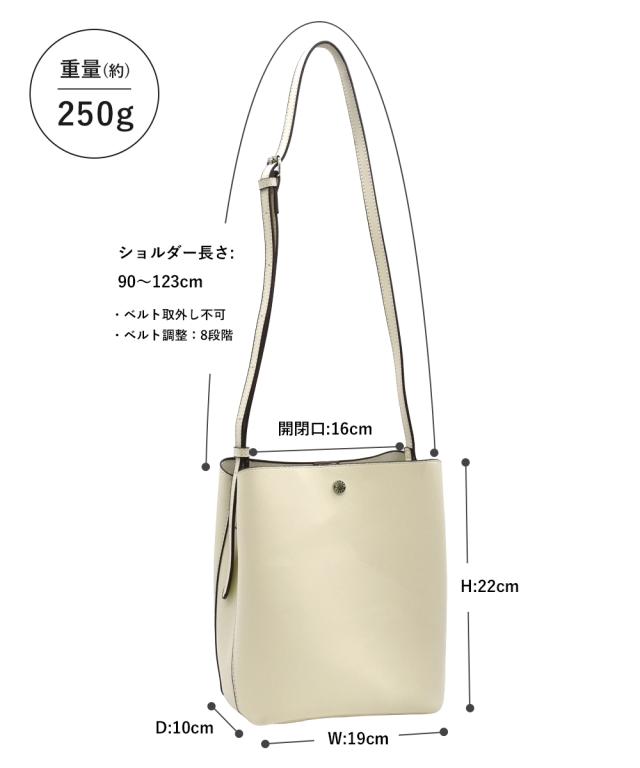 材質:合成皮革 サイズ:たて約22×よこ(上部)約16×よこ(底部)約19×まち幅約10cm 開閉:ファスナー ポケット:外:2個(上部マグホック×2) 肩ひも長さ:約90〜123cm(取り外し不可 ) ベルト調整:8段階 重量:約250g A5ファイル対応 原産国:中国製