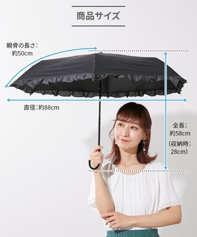 材質:ポリエステル100% 【本体サイズ】全長:約58cm 直径:約88cm 親骨:約50cm 【収納時のサイズ】縦:約28cm 横:約7cm 原産国:中国製・カンボジア製