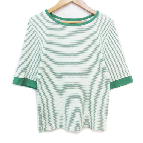 【中古】アントマリーズ リブカットソー 五分袖 ラウンドネック ボーダー柄 F 白 緑 ホワイト グリーン レディース