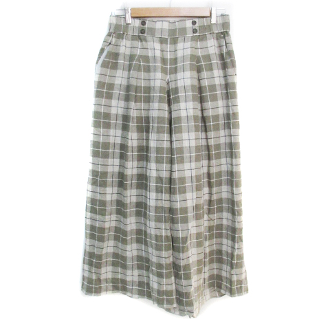 【中古】コムサイズム ワイドパンツ イージーパンツ アンクル丈 リネン グレンチェック柄 13 カーキ 白 レディース