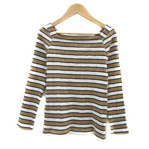 【中古】グローバルワーク リブニット カットソー 長袖 ボーダー柄 M マルチカラー ベージュ ■MO レディース