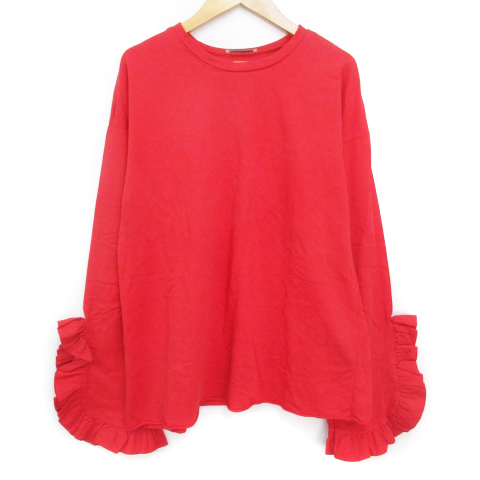 【中古】ザラ トラファルック ZARA Trafaluc カットソー 長袖 フリル 無地 オーバーサイズ S 赤 レッド レディース