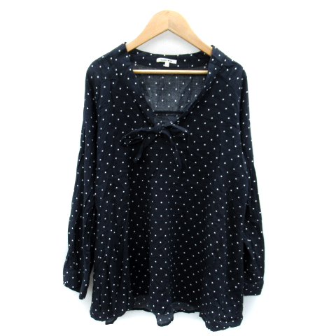 【中古】グローバルワーク ブラウス カットソー 長袖 リボンタイ ドット柄 水玉柄 L 黒 ブラック 白 レディース