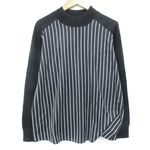 【中古】トラーナ ニット カットソー 長袖 ボトルネック ストライプ柄 F 黒 白 ブラック ホワイト /FF16 レディース