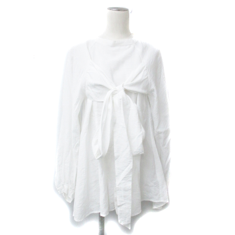 【中古】ミスティック チュニック シャツ バックボタン ブラウス 長袖 リボン ベアバック F 白 ■MO レディース