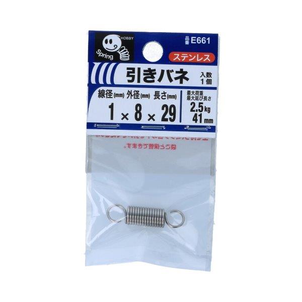 | 品名 | 引きバネ 1×8×29mm 1個入 E661 |
