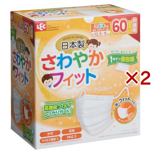さわやかフィット 日本製 不織布マスク 子ども用 個包装 JIS規格適合(60枚入×2セット)[不織布マスク]