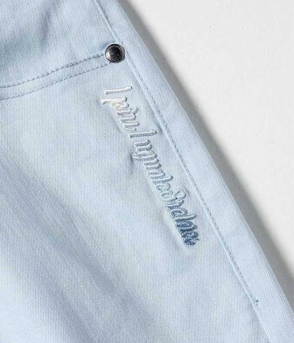 左ポケットには人気の筆記体ロゴを刺繍で配置。華やかなグラデーションカラーがスタイリングにアクセントをプラスしています。