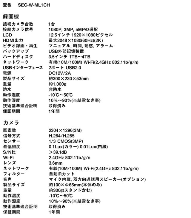 ■ SEC-W-ML1CH スペック