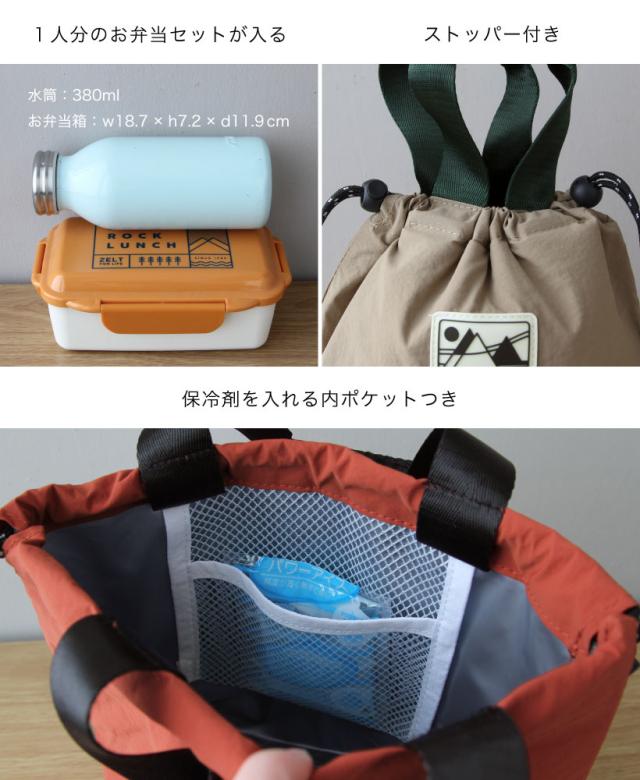 日常的に使いやすい、カジュアルテイストの巾着ランチBag。