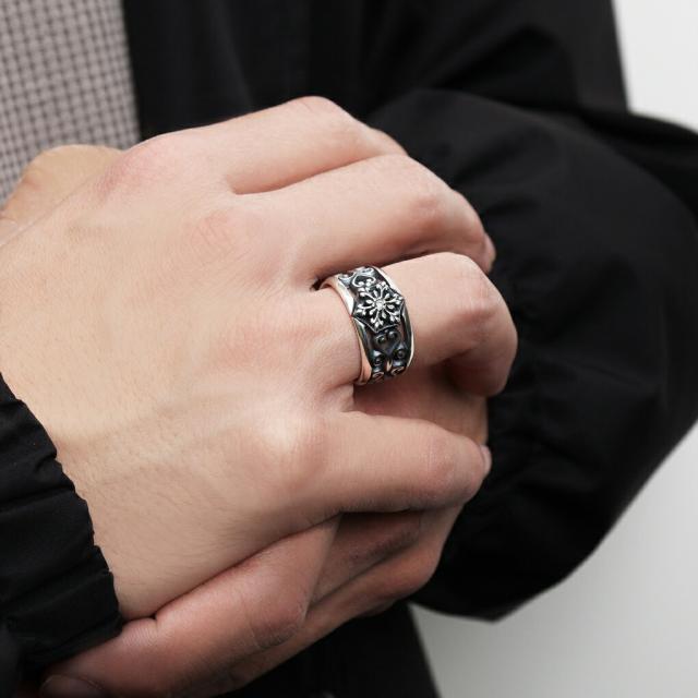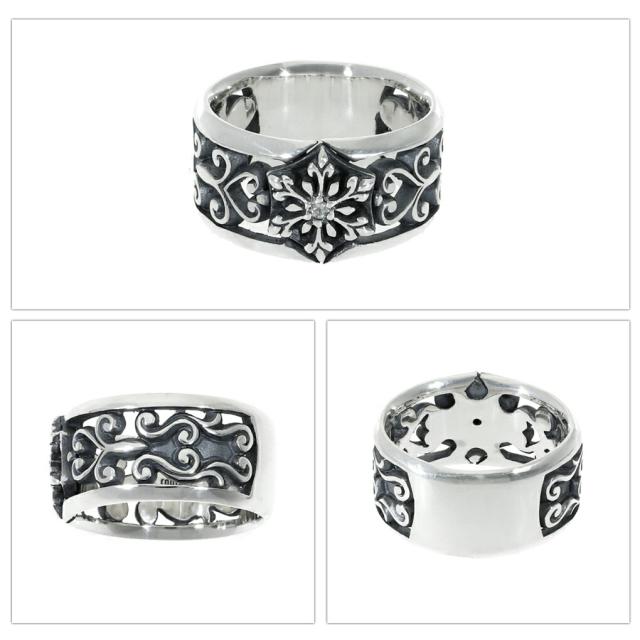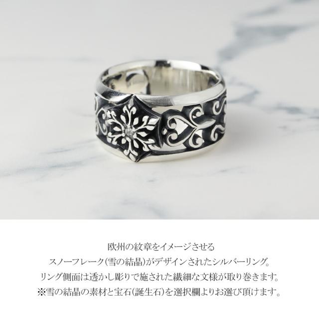 欧州の紋章をイメージさせるスノーフレーク(雪の結晶)を中心に製作されたシルバーリングです。