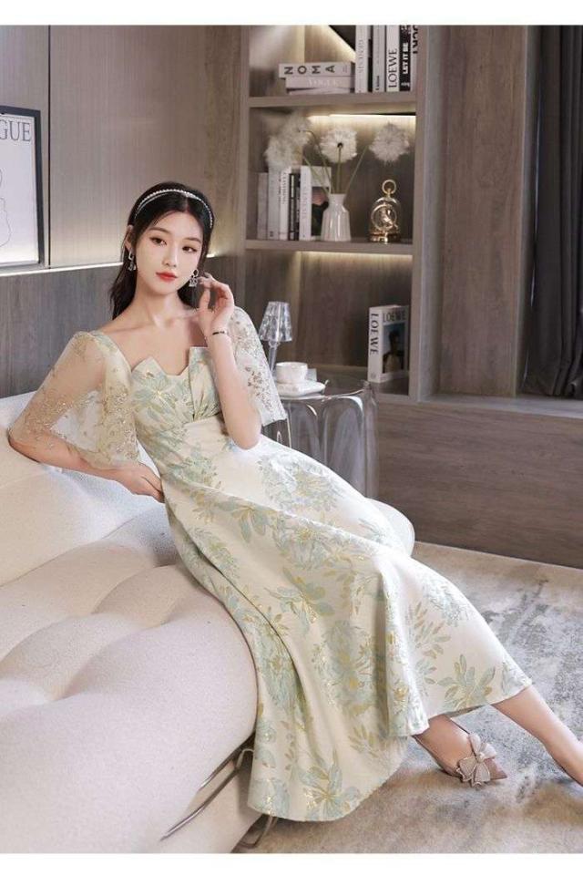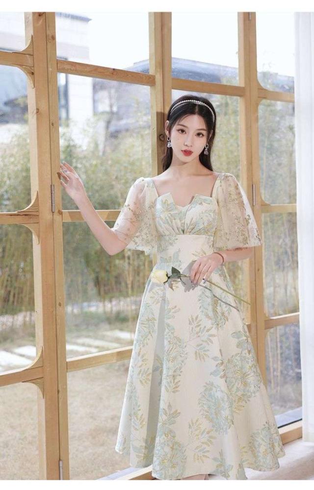 イブニングドレス レディース 乙女風 葉柄 夏新品 パーティー キャバドレス 忘年会 ワンピース 新品 シンプル 可愛い 大人気 安い