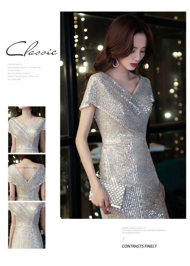 イブニングドレス女性2024 春夏 銀色 キラキラ 結婚式 忘年会 マーメイドラインドレス 着?せ 新品 レディースドレス パーティー