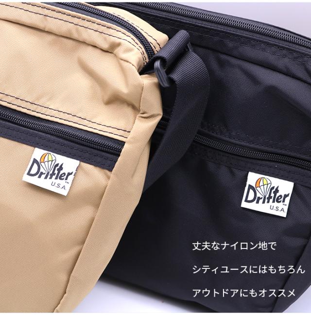 drifter ドリフター ショルダーポーチ ポーチ ショルダーバッグ セカンドバッグ サコッシュ 鞄 カバン 肩掛け お出かけ 便利 黒 ブラック ベージュ オトナカジュアル かわいい トレンド 定番 メンズ レディース ユニセックス 男性 女性 カジュアル ブランド シンプル ナイロン素材 丈夫 水に強い