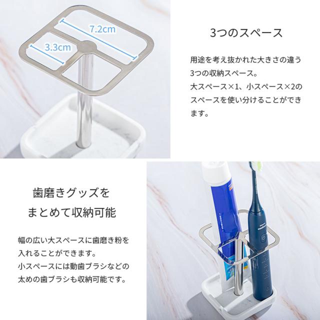 歯ブラシスタンド 2色選べる 3個セット ゴールド シルバー 歯ブラシホルダー 歯磨き粉スタンド チューブスタンド 歯ブラシ置き 歯磨き 収納 歯ブラシ立て ステンレス ホルダー スタンド 高級感 大理石 調 仕切り