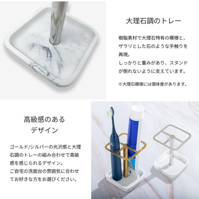 歯ブラシスタンド 2色選べる ゴールド シルバー 歯ブラシホルダー 歯磨き粉スタンド チューブスタンド 歯ブラシ置き 歯磨き 収納 歯ブラシ立て ステンレス ホルダー スタンド 高級感 大理石 調 仕切り