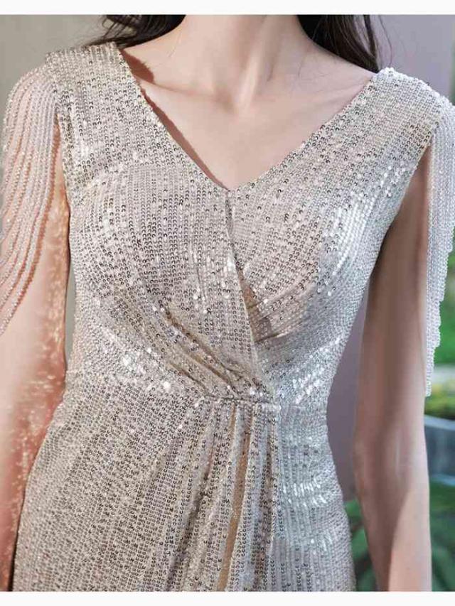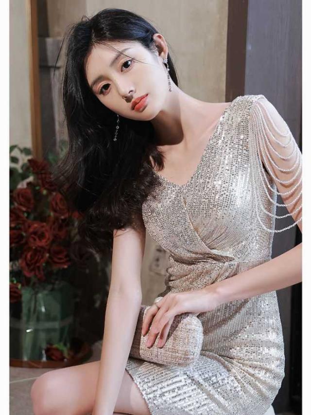 イブニングドレス レディース 銀色 ビーズ刺? 写真を撮る パーティー キャバドレス 忘年会 ワンピース 新品 可愛い 大人気 安い