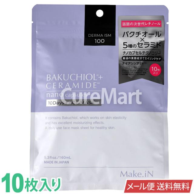 Make.iN バクチオール 5種のセラミド フェイスマスク 10枚入 日本製 10Days FACE MASK メール便送料無料 エイジングケア ナイアシンアミド ナノカプセル フェイスパック フェイスマスク シートマスク 美容マスク