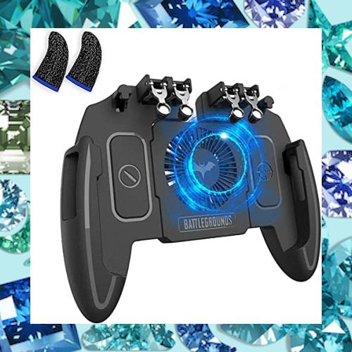 【新型熱対策一体式】4in1 冷却 スマホ ゲーム パッド PUBG Mobile 荒野行動 コントローラー ゲームパット 与える 2個入り 超薄銀繊維 一体式コントローラー スマホゲーム 押しボタン&グリップの一体式 冷却ファン付き 800mAhバッテリー内蔵 6本指操作可能 押しボタン&グリップの一体式 高感度射撃ボタン 高速射撃 スクリーンに優しい トリガー 一体ハンドル サイズ調節可能 iPhone/Android 各種ゲーム対応 (黒)