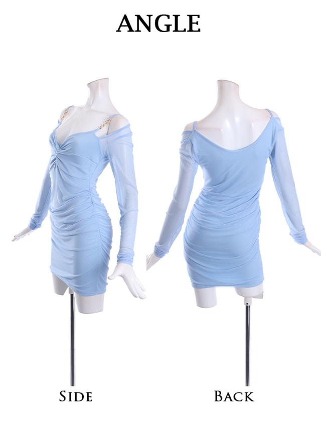 一部予約販売 ミニドレス RyuyuChick ストレッチ 韓国っぽいデザイン メッシュ素材 ミニドレス オフショル キャバ