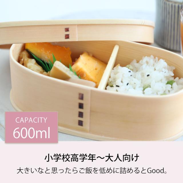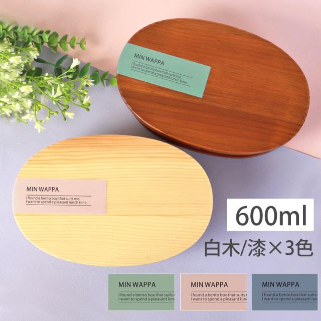 大きいなと思ったらご飯を低めに詰めてください。お弁当箱 白木 漆塗り 600ml 小判型 MIN WAPPA くすみカラー かわいい 弁当箱 1段 曲げわっぱ弁当箱 ランチボックス おしゃれ 北欧風 大人 女子 一段 イラスト ロゴ 英字 オリジナル 女性 送料無料 新生活