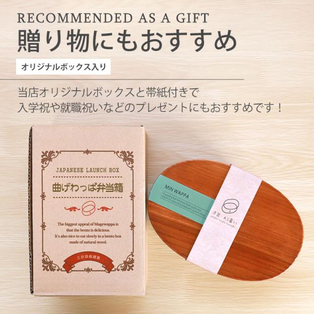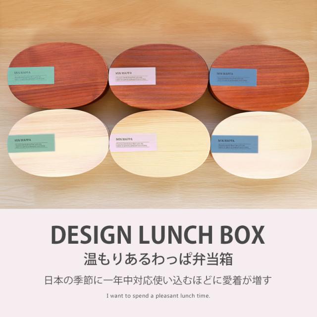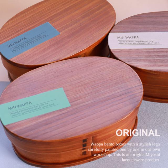 曲げわっぱ お弁当箱 白木 漆塗り 600ml 小判型 MIN WAPPA くすみカラー かわいい まげわっぱ 弁当箱 1段 曲げわっぱ弁当箱 ランチボックス おしゃれ 北欧風 大人 女子 一段 イラスト ロゴ 英字 オリジナル 女性 送料無料 新生活