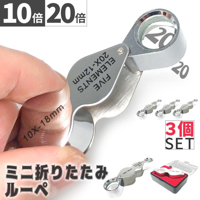 ルーペ 2レンズ 高倍率 3個セット 拡大鏡 ルーペ 倍率10倍 20倍 ケース付き 携帯 携帯ルーペ ジュエリールーペ 軽量 持ち運び便利 宝石鑑定 校正 精密作業 読書