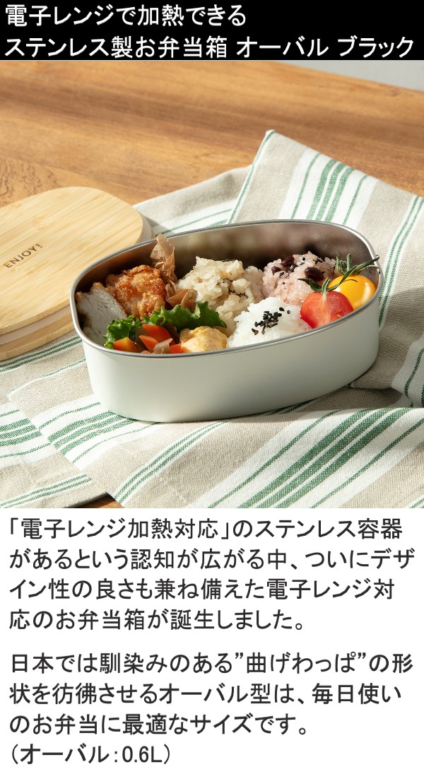 ののじ ステンレスランチボックス オーバル ブラック NLD0600-BA 送料無料 弁当箱 ステンレス 電子レンジ対応 食洗器対応 ランチボックス 保存容器