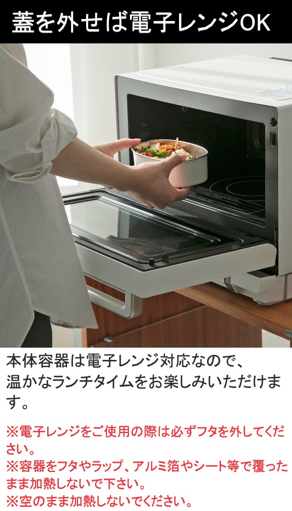 ・電子レンジをご利用の際は必ずフタを外してください。容器をフタやラップ、アルミ箔やシート等で覆ったまま加熱しないでください。