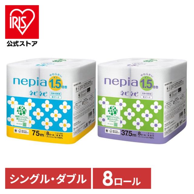 トイレットペーパー nepia 省スペース ネピア ネピネピ トイレットロール 1.5倍巻き 8ロール 無香料 540758 540759 王子ネピア 全2種類 1.5倍巻 ふんわり やわらか フレッシュパルプ 大容量 香りなし しっかり吸水 FSC認証紙