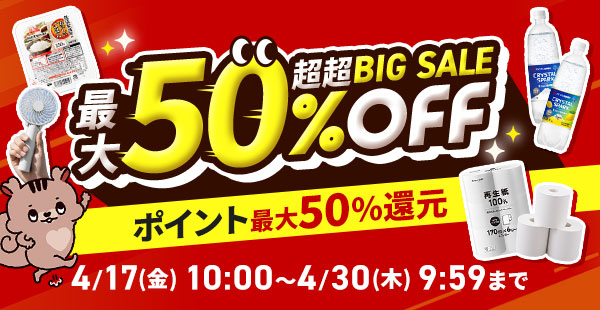- いつも買っているトイレットペーパーがお得に買えたので助かりました。