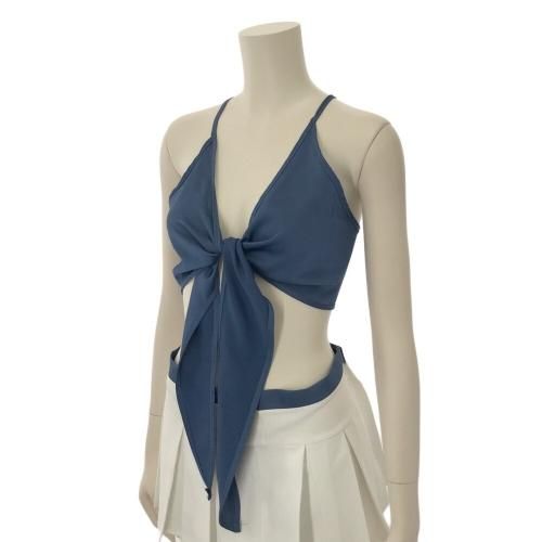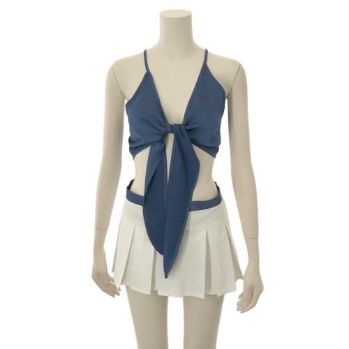 ショート丈のトップスはフロントリボンで胸元の谷間をメイク。