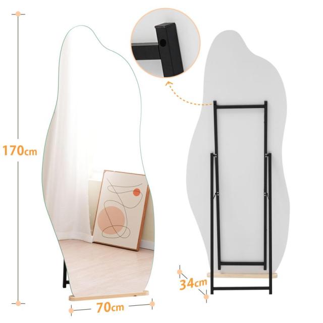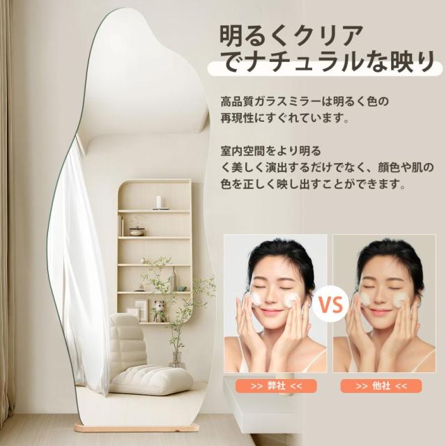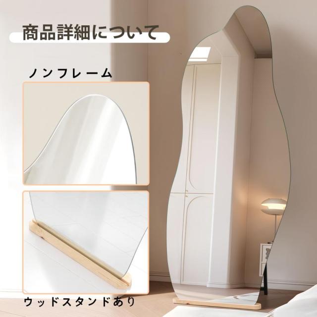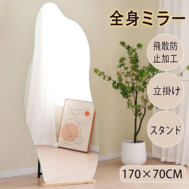 「クーポン配布中」「170×70CM」全身鏡 姿見鏡 スタンドミラー イレギュラミラー 立てかけ 姿見 鏡 ミラー おしゃれ 大型 飛散防止 木製台あり ノンフレーム 店舗 オフィス インテリア 玄関 リビング 更衣室 事務所 バレンタイン プレゼント