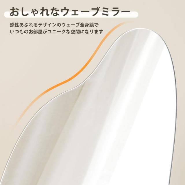 【イレギュラミラーなデザイン】曲線をフレーム部に採用し、ミラ一の視覚的新しい空間が生まれ、お部屋がよりおしゃれで広くなります。