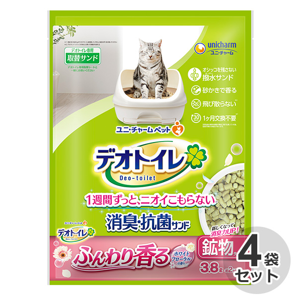 ケース / 国産 デオトイレ ふんわり香る 消臭・抗菌サンド ホワイトフローラルの香り 3.8L × 4袋 猫砂 ネコ砂 鉱物タイプ 香り付き 1袋約2ヵ月 消臭 抗菌 固まらない 日本製 システムトイレ用 ユニ・チャーム ユニチャーム