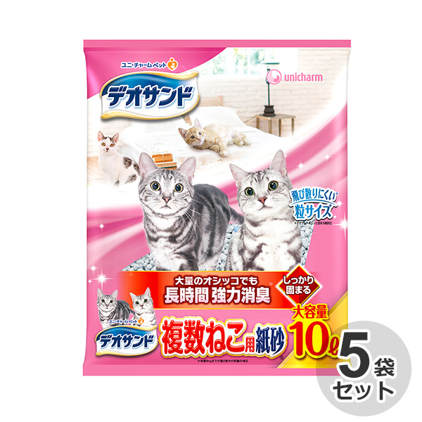 ケース / 国産 デオサンド 複数ねこ用紙砂 10L × 5袋 猫砂 ネコ砂 紙タイプ 紙砂 消臭 固まる紙砂 日本製 トイレ サンド 固まる 砂 ユニ・チャーム ユニチャーム