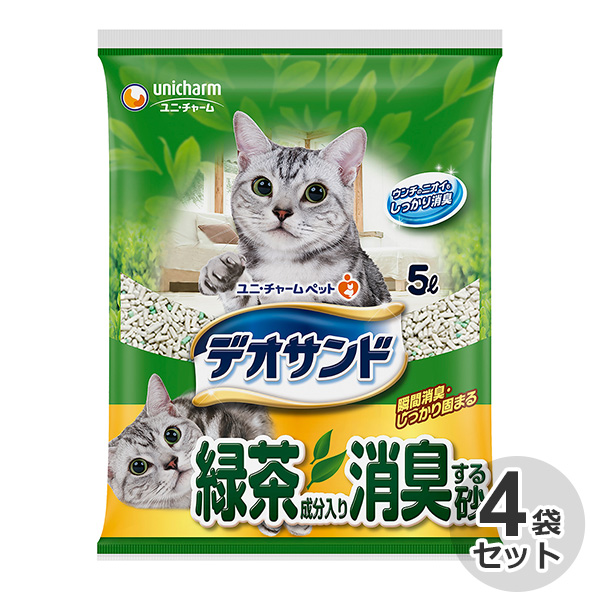 ケース / 国産 デオサンド 緑茶成分入り消臭する砂 5L × 4袋 猫砂 ネコ砂 鉱物系 ベントナイト 緑茶 お茶 消臭 日本製 トイレ サンド 固まる 砂 ユニ・チャーム ユニチャーム
