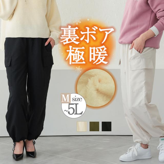 裏フリース パンツ カーゴパンツ レディース 裏ボア 防寒パンツ きれいめ ミリタリーパンツ パラシュートパンツ 春 夏 秋 冬 ボトムス カーゴ ミリタリー パラシュート 裾ゴムパンツ ウエストゴム 黒 白 カーキ M 5L 大きいサイズ 裏ボアパンツ 裏起毛パンツ 裏起毛 暖かい