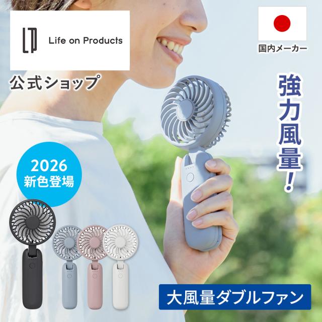 大風量 ハンディファン カラビナ 携帯扇風機 強力 強風 首掛け 卓上扇風機 小型扇風機 LCAF001 ライフオンプロダクツ Life on Products 自立 デスクファン 高速暴風 軽量 USB Type-C充電式 4段階風量 二重反転ファン 静音 暑さ対策 熱中症対策 持ち運び 手持ち扇風機 防災