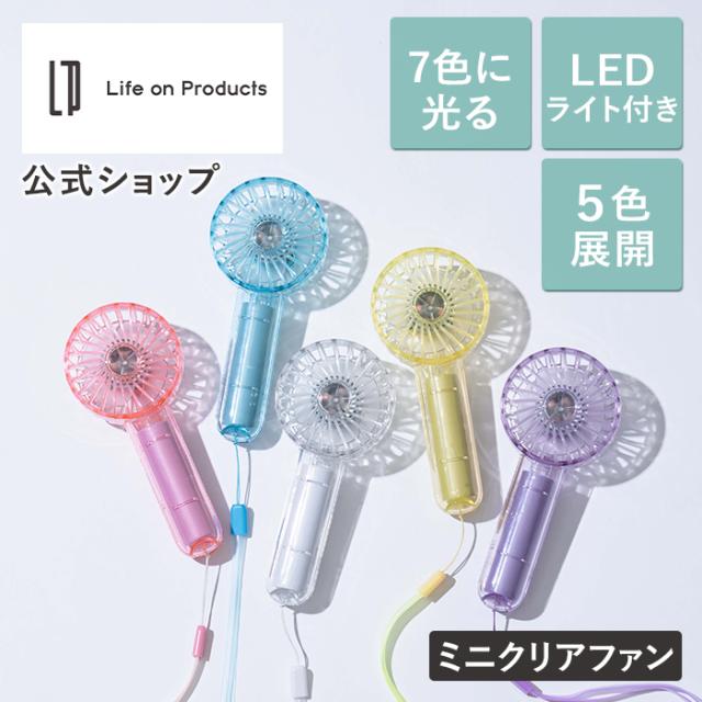 ミニクリアファン LEDライト付 LCAF002 ハンディファン 扇風機 ミニ扇風機 首かけ ストラップ 携帯扇風機 小型扇風機 軽量 スリム USB 充電式 手持ち扇風機 ストラップ付き LEDライト 小型 携帯 夏 お祭り イベント アウトドア 熱中症対策 USBコード付き Life on Products
