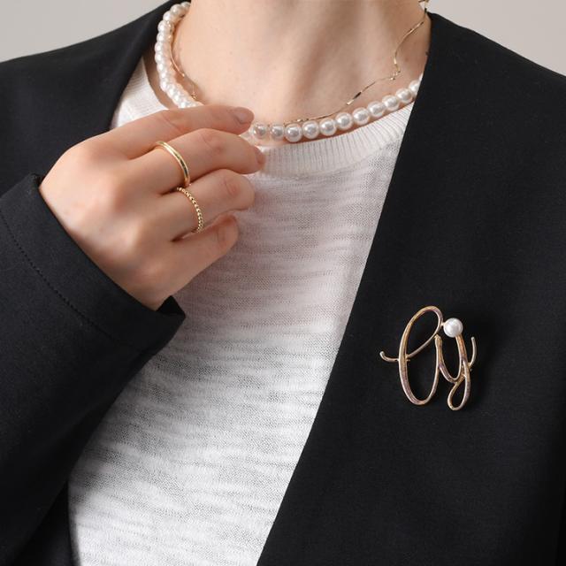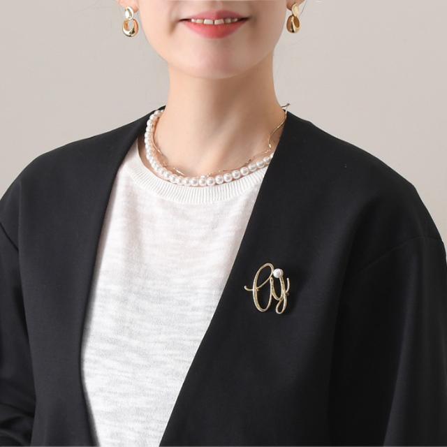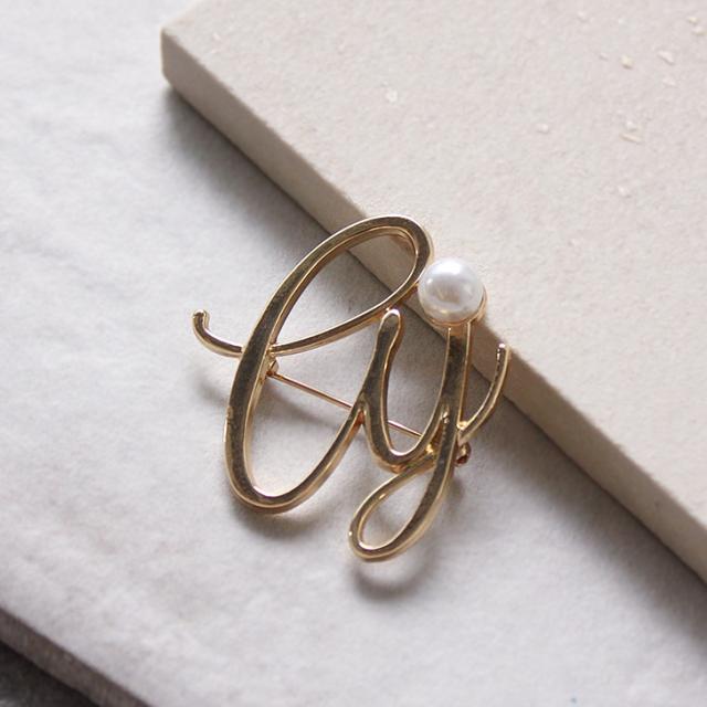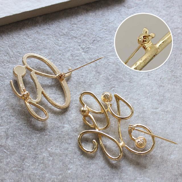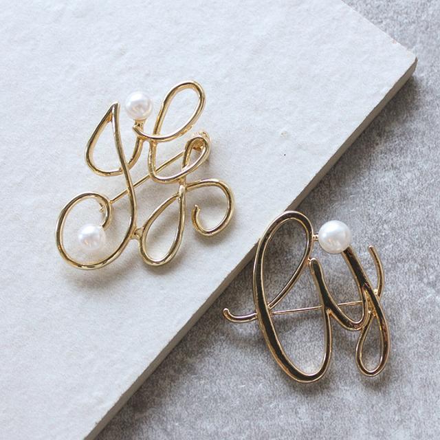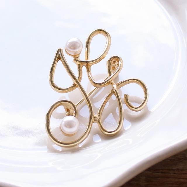 新作 フェイクパール付き ゴールド 変形 モノグラム ピン ブローチ レディース アクセサリー ジュエリー フェイクパール パール ピンブローチ ラペルピン コサージュ 入学式 卒業式 入園式 卒園式 結婚式 ママ