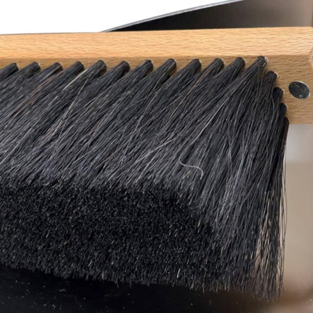 馬毛を贅沢に使ったブラシは柔らかな使い心地で、軽く掃くだけで細かなチリまできれいに掃き出してくれます。動物の毛は静電気が起きにくく、ホコリが舞い散らないのも嬉しいポイントです。