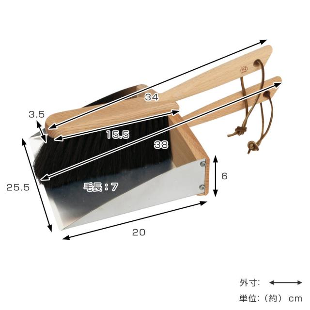 | サイズ | (パン) 全長:38cm×最大幅:25.5cm、パン部分:幅25.5cm×奥行き20cm×高さ6cm、ハンドル部分:長さ16cm×太さ2cm (ブラシ) 全長:34cm、持ち手太さ:3cm、ブラシ部分:縦3.5cm×横15.5cm、毛長7cm |