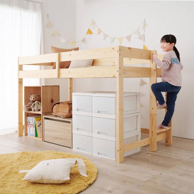 低めの設計でお子様も安心して使えるロフトベッドです。ロフトベッドが初めてのお子様におすすめです。コンパクトで空間を有効活用できるので、お部屋を広々とお使いいただけます。