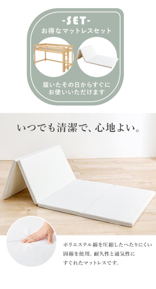ロフトベッド ロータイプ マットレス付き 高さ120cm すのこ 天然木 ( ベッド ロフト 子ども 秘密基地 頑丈 F★★★★ 低ホルマリン 低め 安心 垂直 ハシゴ 省スペース 木製 マットレス セット )
