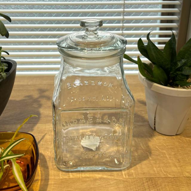 安定感のあるスクエア型のガラスジャーです。コーヒー豆やショートパスタ、お菓子など幅広い食品の保存にお使いいただけます。見せる収納としてインテリアやディスプレイに活用するのもおすすめです。