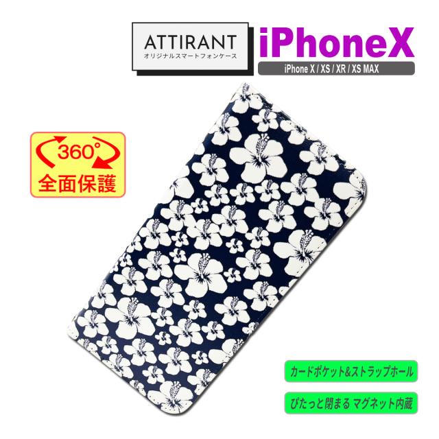 iPhone X ケース 手帳型 カバー X XS XR XSMAX ハイビスカス ネイビー ホワイト かわいい オシャレ アイフォンケース