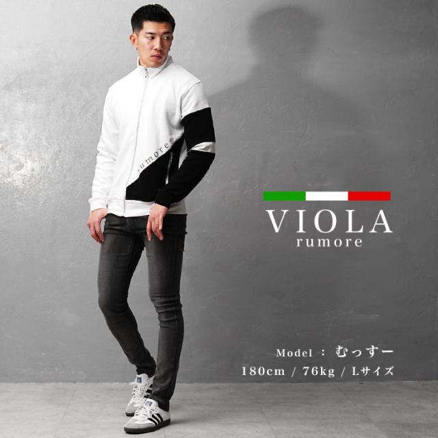 VIOLA rumore ヴィオラ スタンドジャケット メンズ ロゴ ブランド ライトアウター メンズ 長袖 スタンドネック ストレッチ おしゃれ 黒 白 トップス アウター メンズ 長袖 メンズファッション ちょいワル お兄系 オラオラ系 Y42203 春新作 新作 春