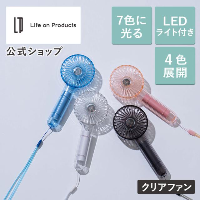 クリアファン LEDライト付 LCAF003 ハンディファン 扇風機 ミニ扇風機 首かけ ストラップ 携帯扇風機 小型扇風機 軽量 スリム USB 充電式 手持ち扇風機 ストラップ付き LEDライト 小型 携帯 夏 お祭り イベント アウトドア 熱中症対策 USBコード付き Life on Products