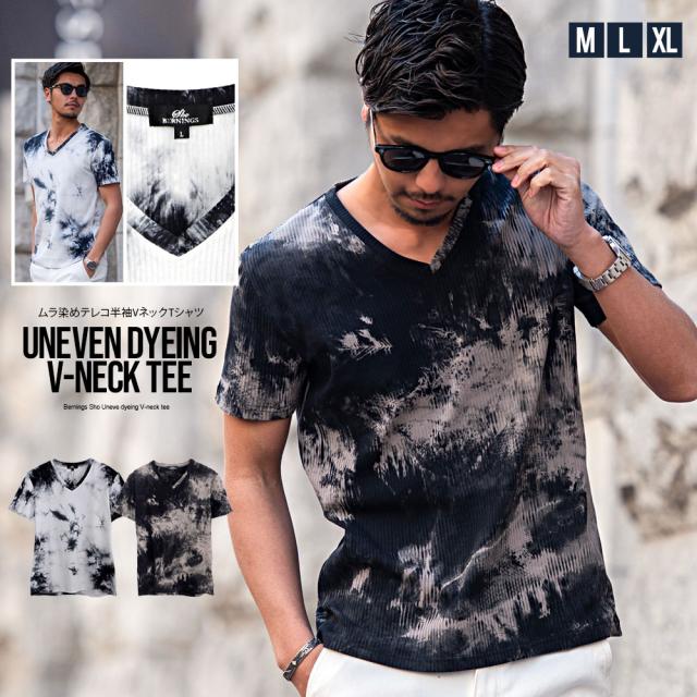 Tシャツ メンズ 半袖 ブランド おしゃれ Vネック 半袖Tシャツ カットソー インナー メンズ ムラ染め タイダイ テレコ きれいめ 上品 タイト 細身 大人 服 ブラック 黒 ホワイト 白 M L LL XL ユニセックス 男性 男 服 春 夏 ファッション 郵 即日発送 [3270-52]